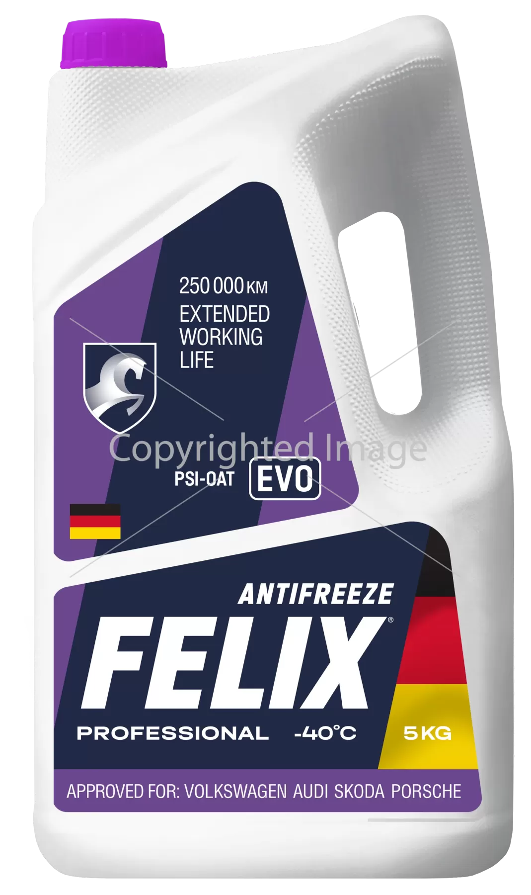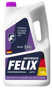 Антифриз FELIX EVO Профессиональный лобридный антифриз премиум-класса, полностью соответствующий особым требованиям современных двигателей Volkswagen Group.