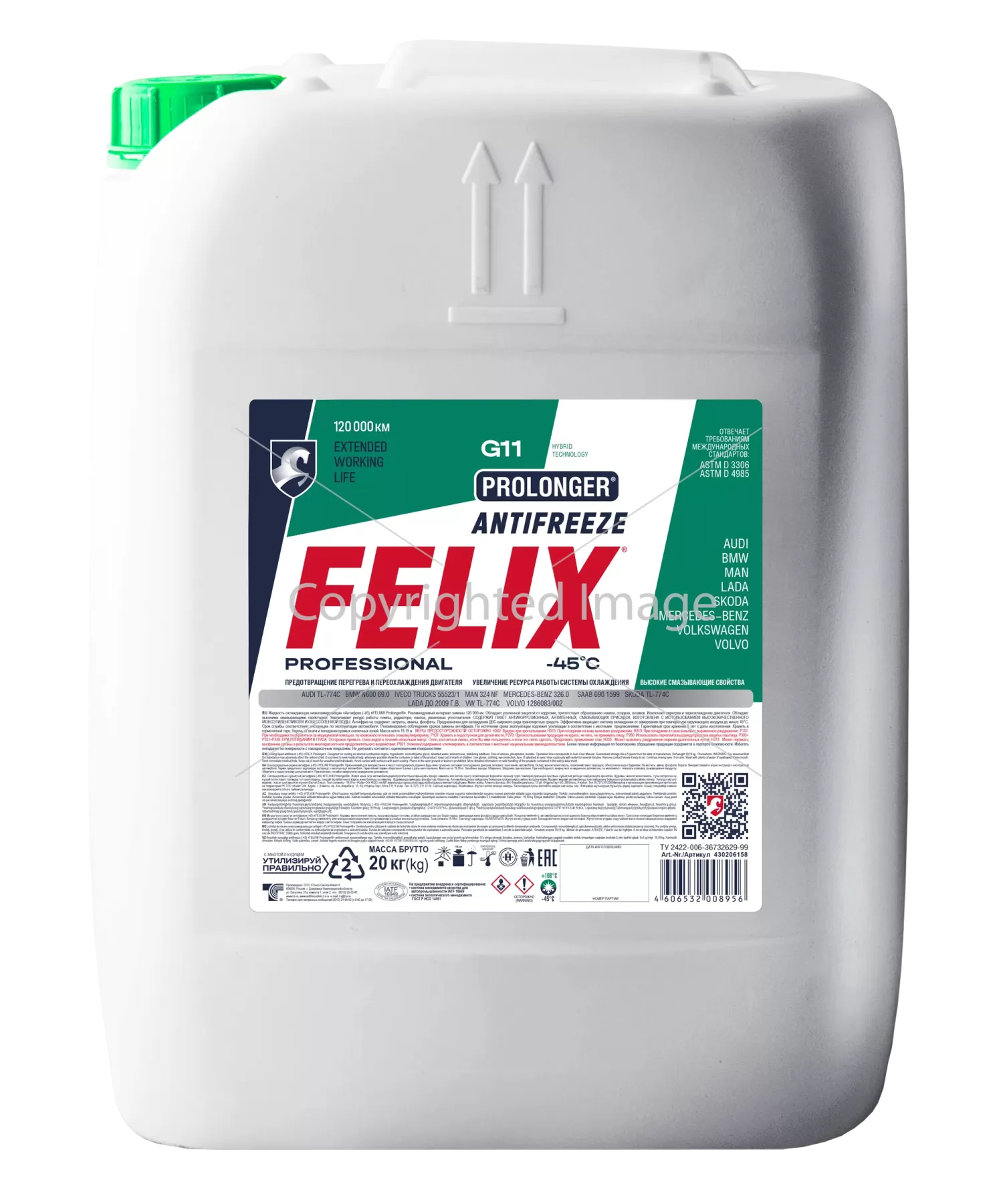 Охлаждающая жидкость FELIX Prolonger обеспечивает защиту двигателя и деталей системы охлаждения легковых и грузовых автомобилей от всех видов коррозии, перегрева и переохлаждения. Соответствует требованиям стандарта G11 по классификации Volkswagen и международным стандартам: ASTM D 3306, ASTM D 4985, SAE J 1034, BS 6580:1992.