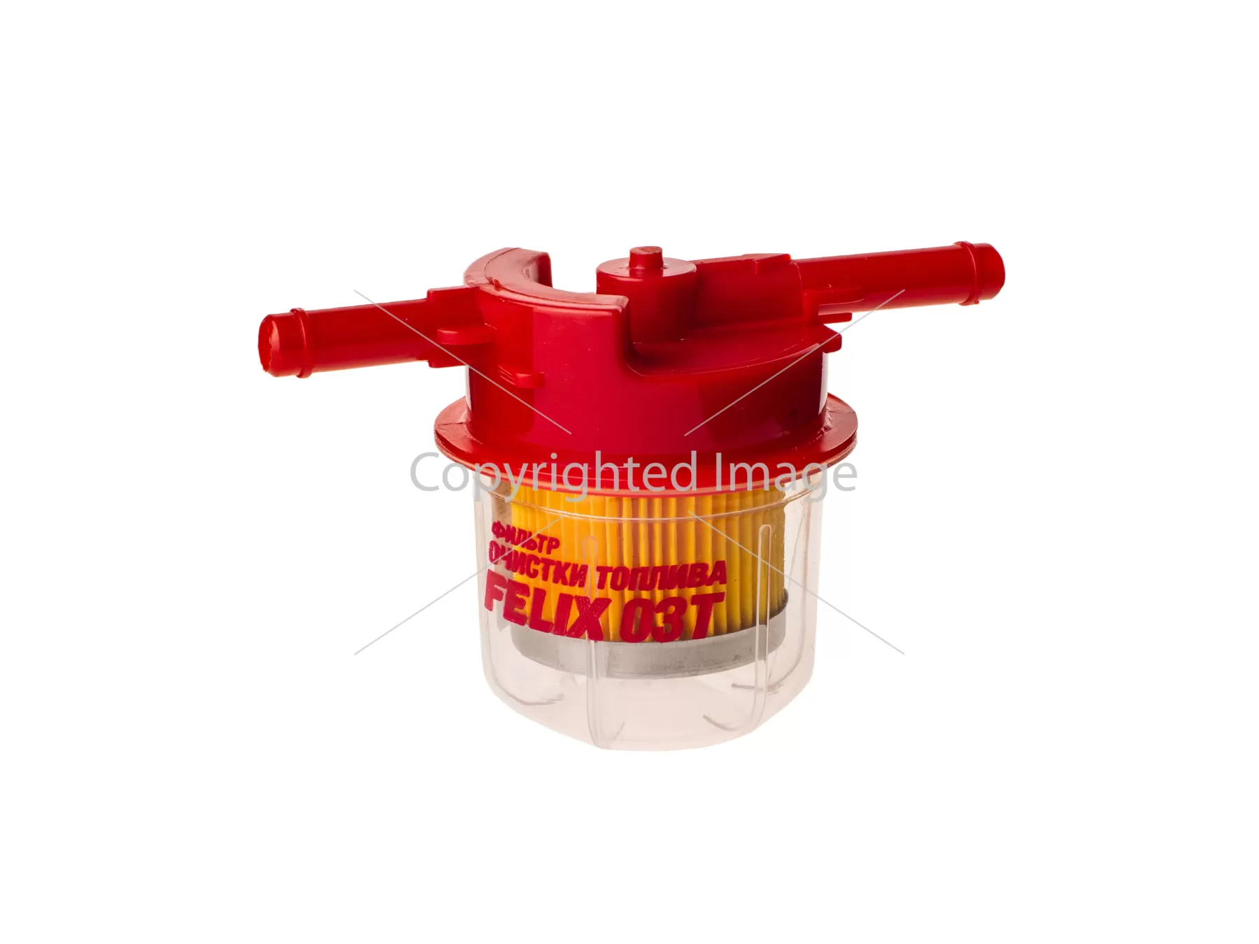 Фильтр топливный FELIX 03 T(50) состоит из гофрированного фильтровального материала, двух торцевых металлических крышек, прозрачного пластмассового корпуса, пластмассовой крышки с двумя штуцерами.