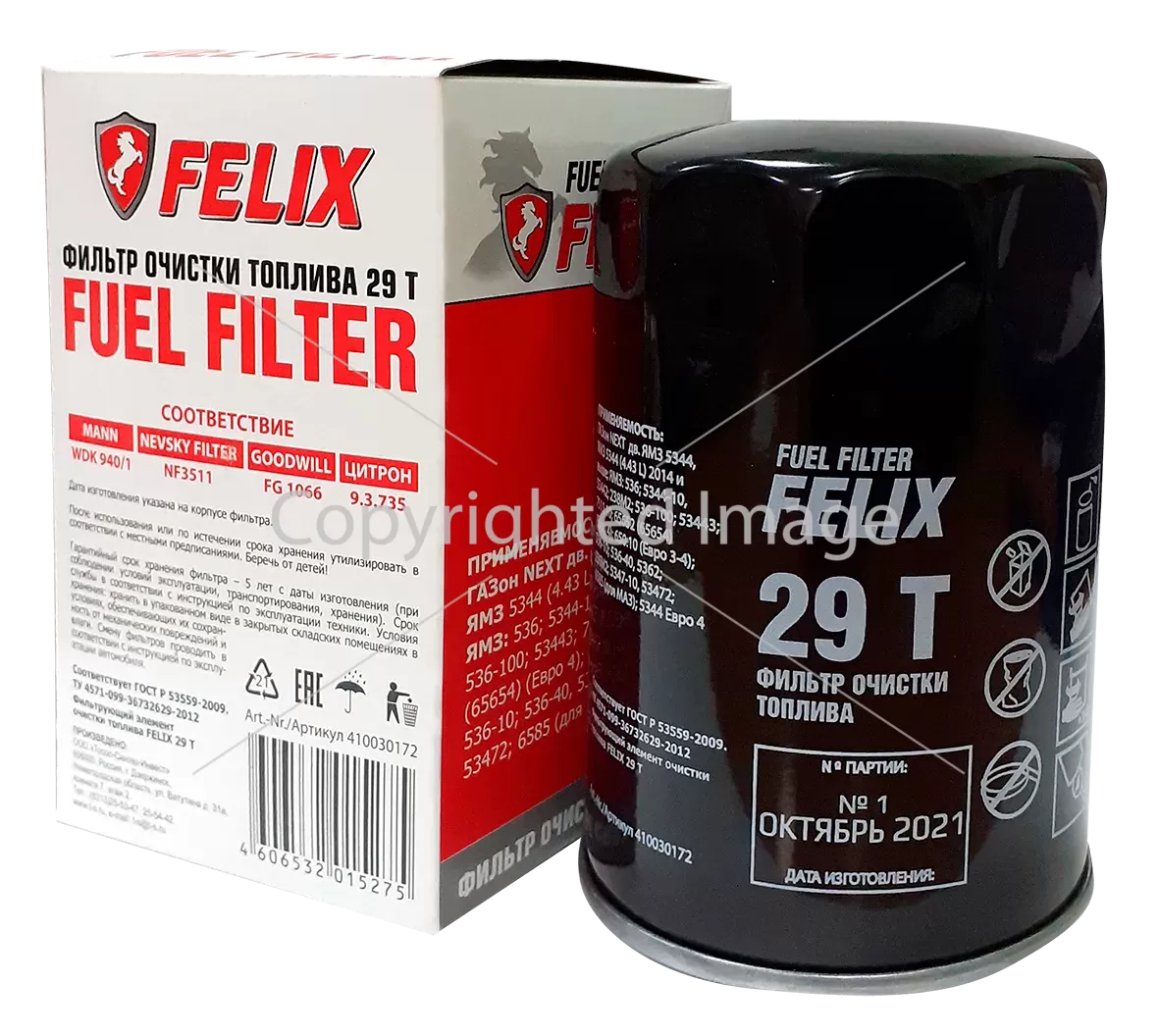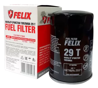 Фильтр топливный FELIX 29 Т состоит из металлического корпуса, картриджа из фильтровального материала.