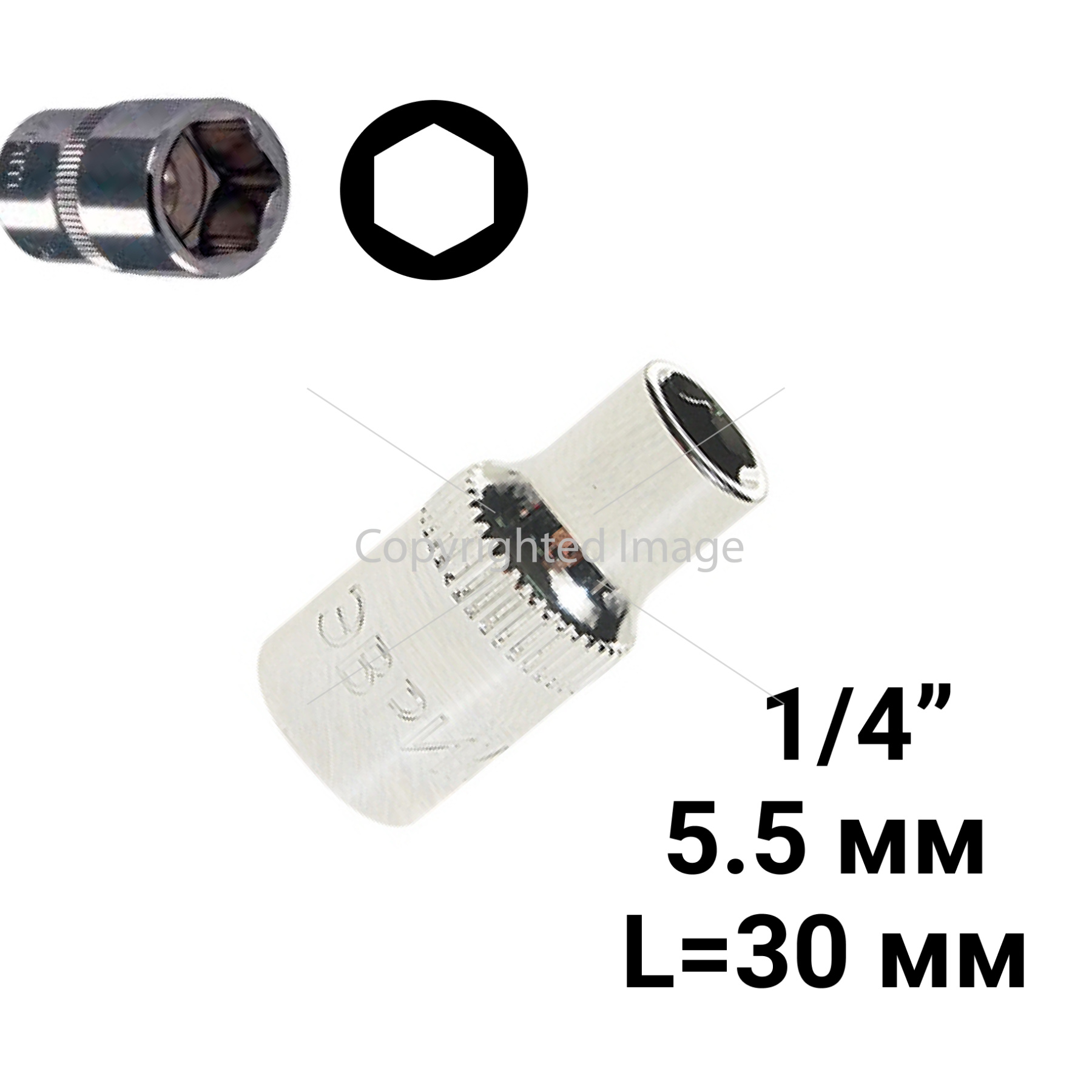 Головка торцевая 5.5мм 1/4" 6-гранная L=30мм ЭВРИКА ER-90204