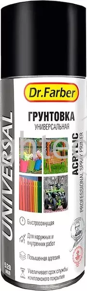 Грунтовка-аэрозоль Dr.Farber акриловая универсальная черная 520 мл 12188-270