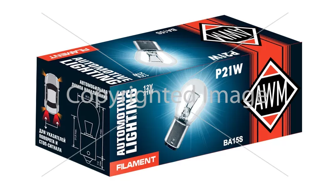 Лампа накаливания AWM P21W 12V 21W (BA15S) White