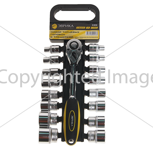 НАБОР ТОРЦЕВЫХ ГОЛОВОК С ТРЕЩОТКОЙ ER-96100 1/2" DR 8-30ММ 17 ПРЕДМЕТОВ (НА ДЕРЖАТЕЛЕ) ЭВРИКА