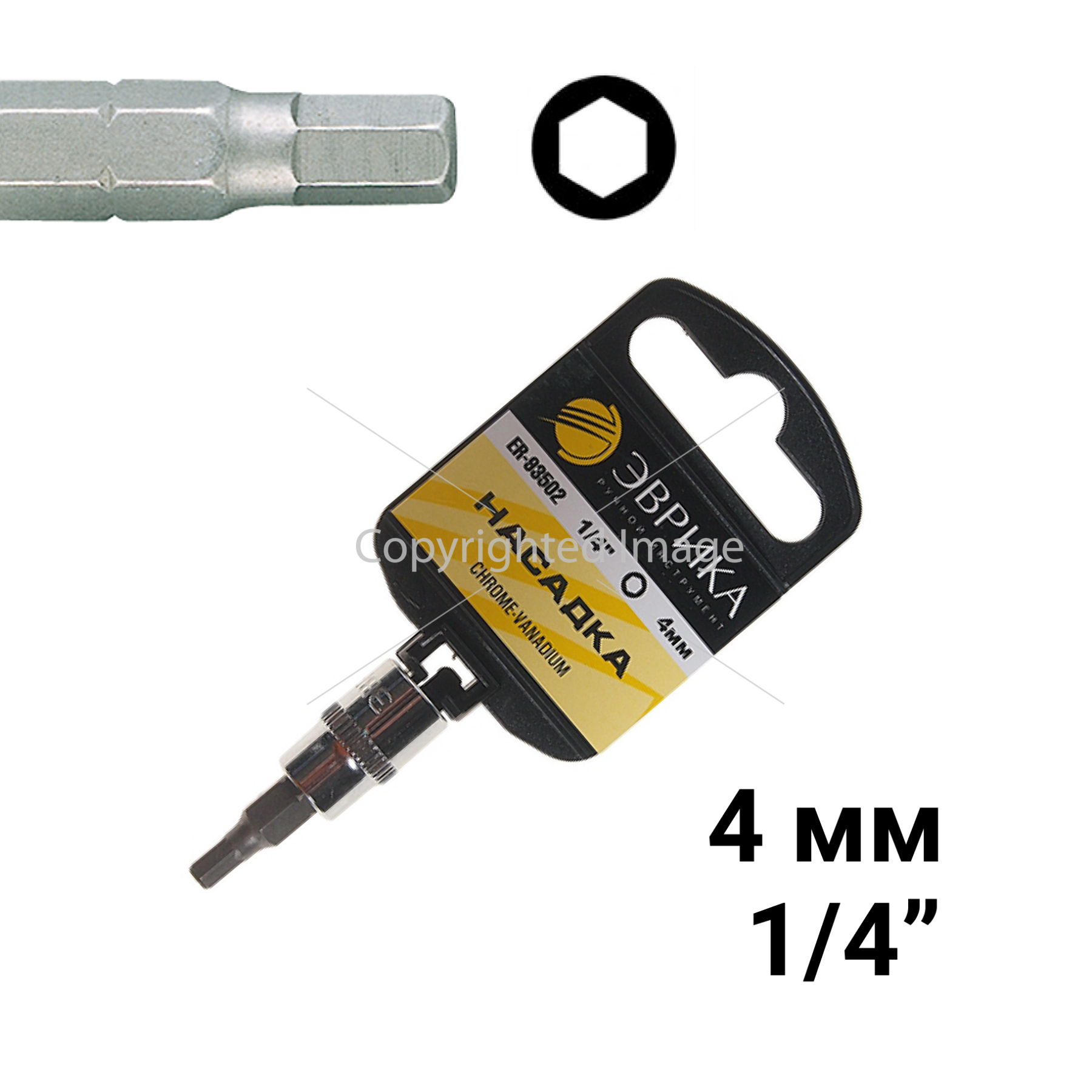 Насадка ER-93502H 1/4" DR 6-гранная 4мм (с держателем) ЭВРИКА