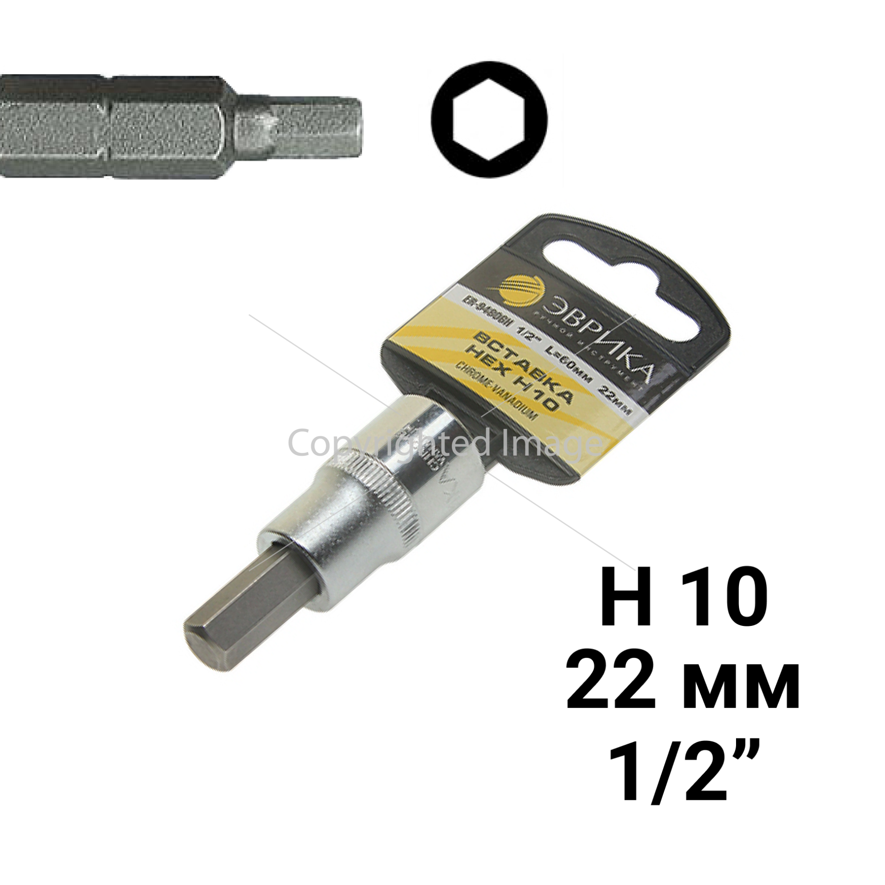 Насадка-вставка с битой Hex H10 ER-94806H 1/2 22мм L=60мм (с держателем) ЭВРИКА
