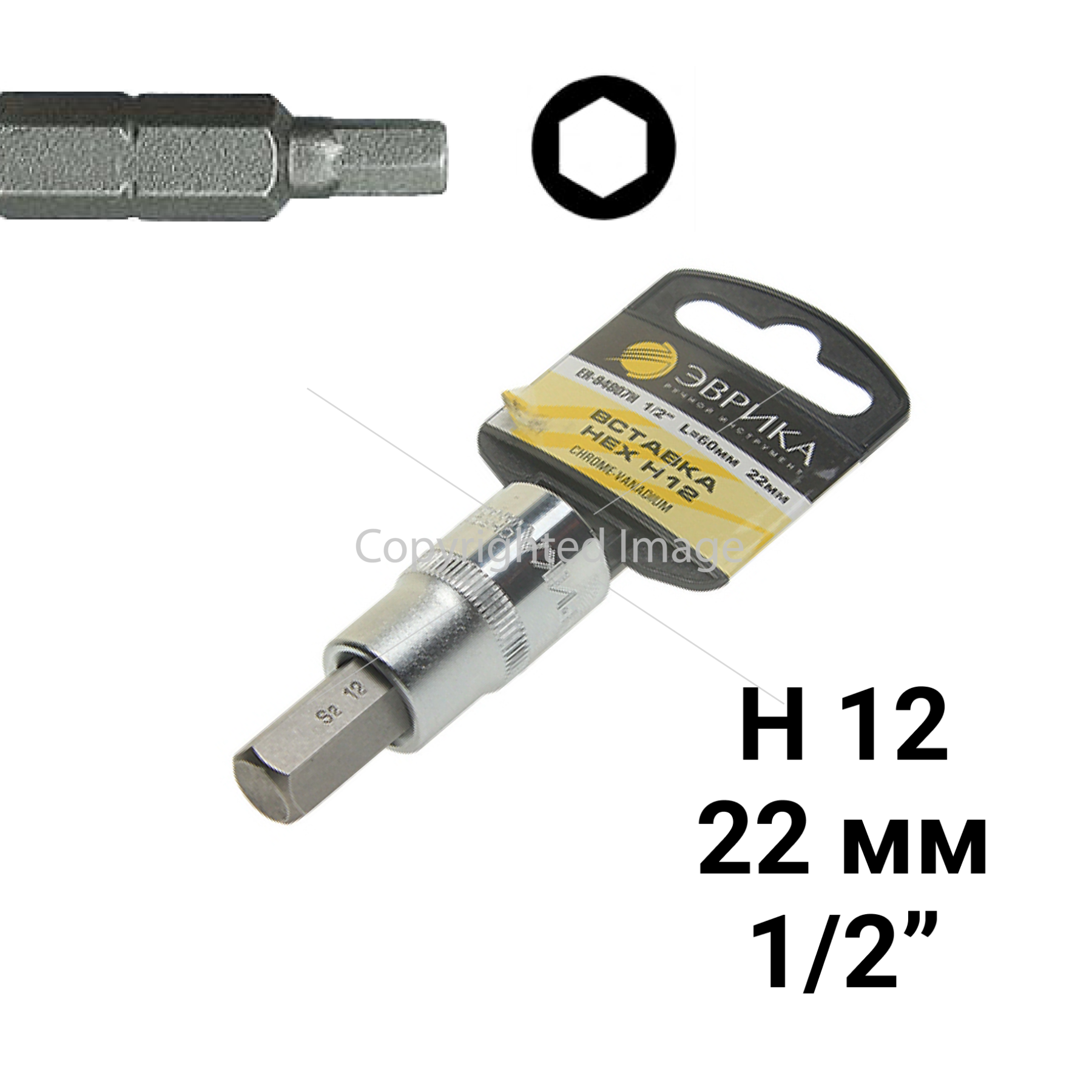 Насадка-вставка с битой Hex H12 ER-94807H 1/2 22мм L=60мм (с держателем) ЭВРИКА