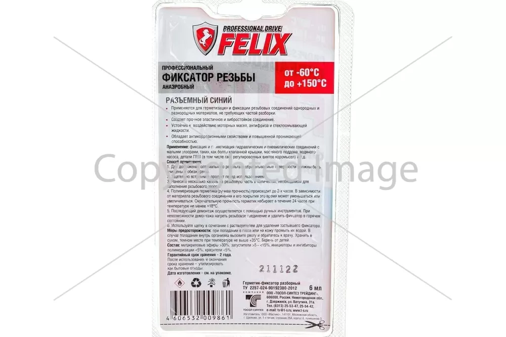 Профессиональный фиксатор резьбы FELIX (синий) 6мл