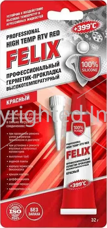 Профессиональный Герметик-прокладка силиконовый красный FELIX (32 г) — высокотемпературный. Красный +399 град.