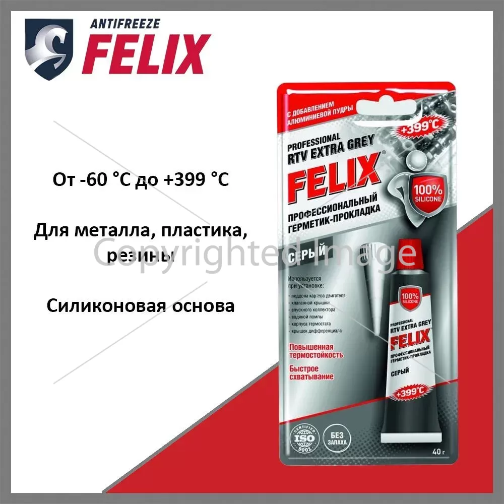 Герметик-прокладка FELIX (серый; 40 г) 411040109 применяется при установке: поддона картера двигателя, клапанной крышки, впускного коллектора, водяной помпы, корпуса термостата, крышек дифференциала.