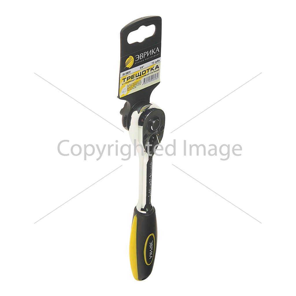 ТРЕЩОТКА ER-13872 3/8" 72-ЗУБЦОВАЯ С ПРЯМОЙ РЕЗИНОВОЙ РУЧКОЙ НА ДЕРЖАТЕЛЬ ЭВРИКА